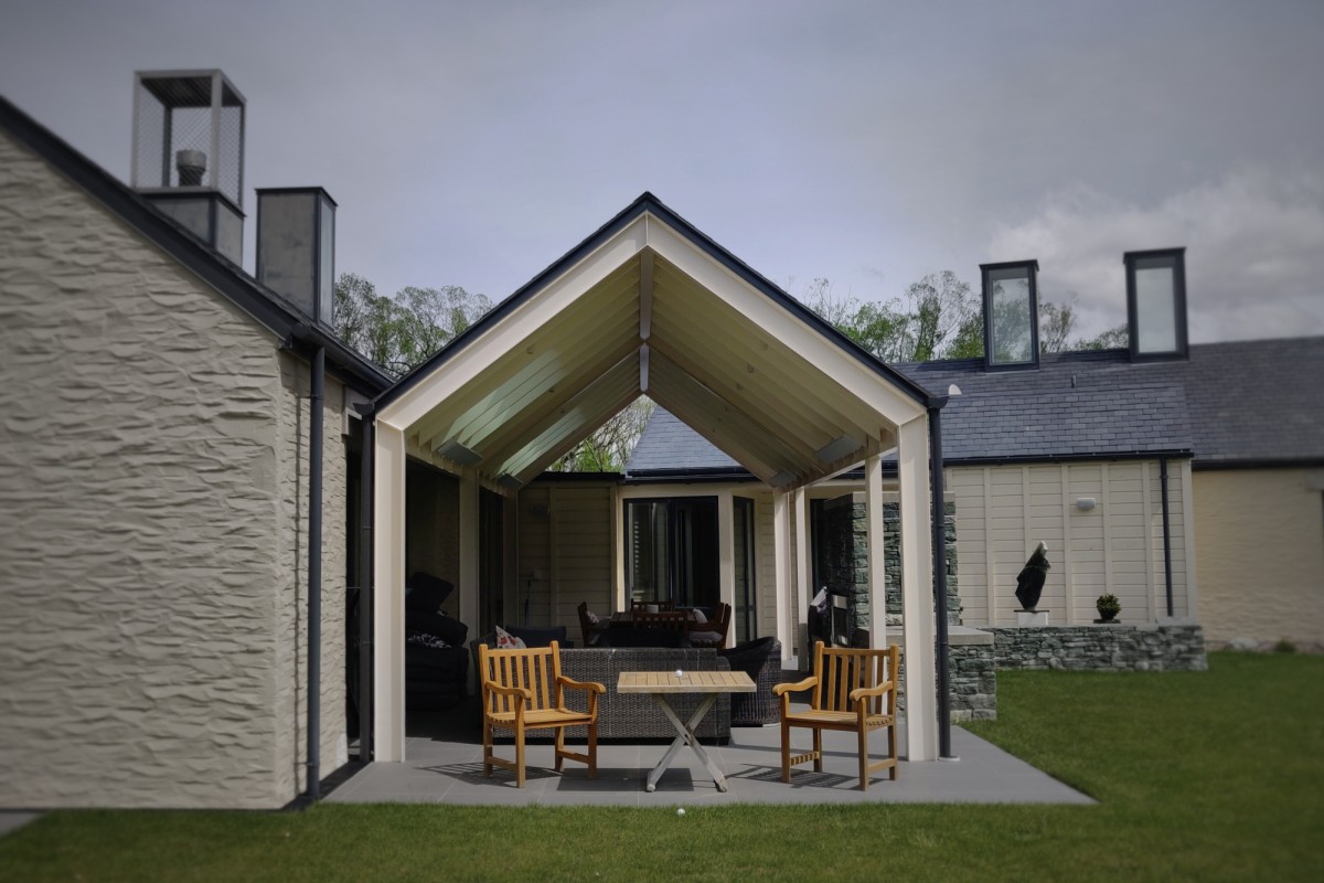 An addition to one of the original Milbrook Streamside House, that Michael designed back in the 1980s. Brief required a large out door room that was close to the main living wing. Millbrook design guidelines required a Gable roof form to match the existing with matching architectural detailing. The result is an example of the indoor/outdoor living in the Millbrook environment, where temperatures can vary dramatically from season to season!